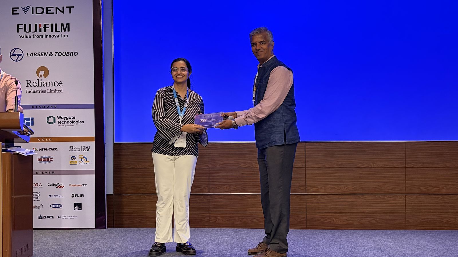 • Best oral presentation for the presentation titled ”Testing and Evaluation of Glass Fibre Reinforced Polymer using Principal Component Analysis” at ISNT NDE 2022, Conference Exhibition on NDE, Mahatma Mandir Convention Exhibition Center, Gandhinagar, Gujarat, India, November 24 – 26, 2022