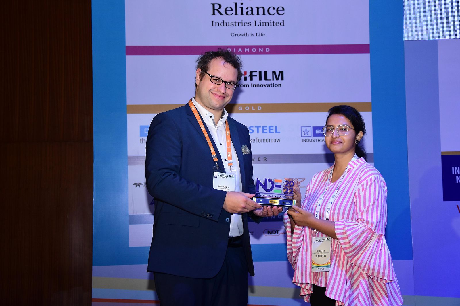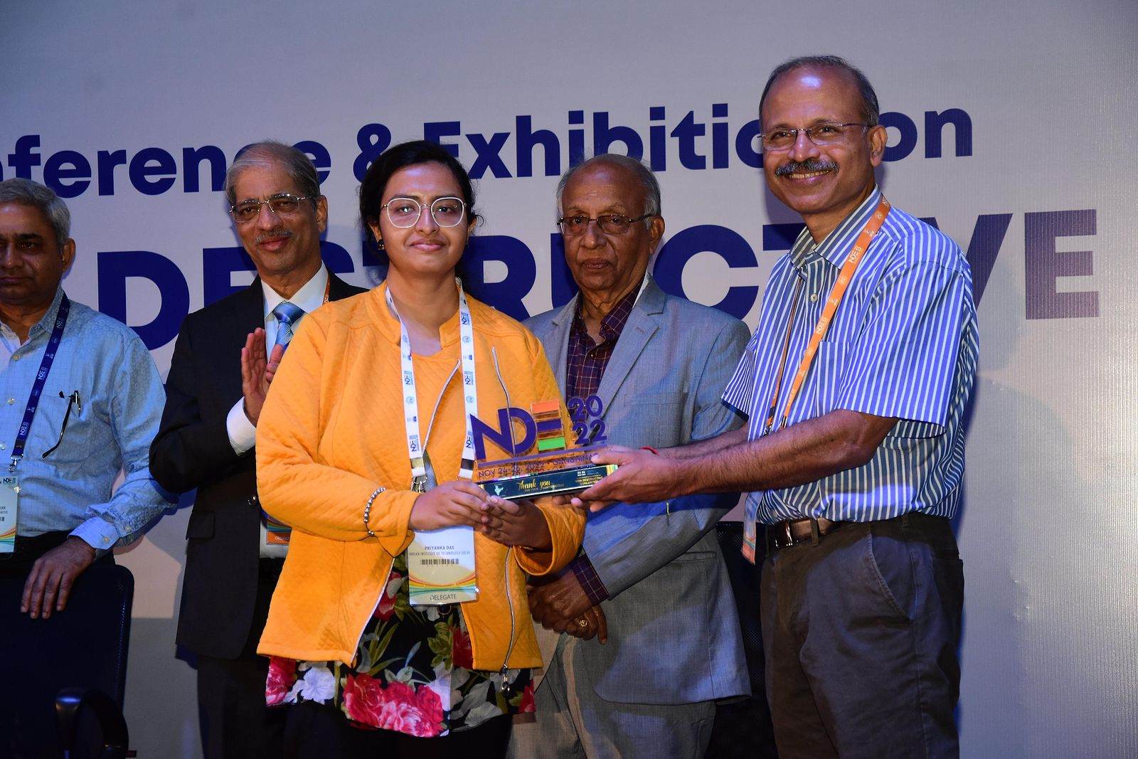 - Best oral presentation for the presentation titled ”Testing and Evaluation of Glass Fibre Reinforced Polymer using Principal Component Analysis” at NDE 2022, Conference Exhibition on NDE, Mahatma Mandir Convention Exhibition Center, Gandhinagar, Gujarat, India, November 24 – 26, 2022